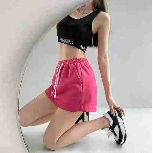 纯棉休闲短裤女夏2025新款韩版显瘦松紧腰运动宽松阔腿裤热裤,粉红色为主,码数s-L,数量450件左右,全清5.8元