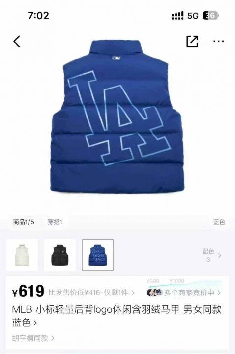 几十件MLB羽绒马甲。 货号:32539
