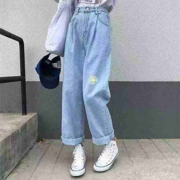 男女同款小雏菊刺绣牛仔裤子直筒阔腿萝卜宽松休闲高腰显瘦百搭牛仔裤1400件...