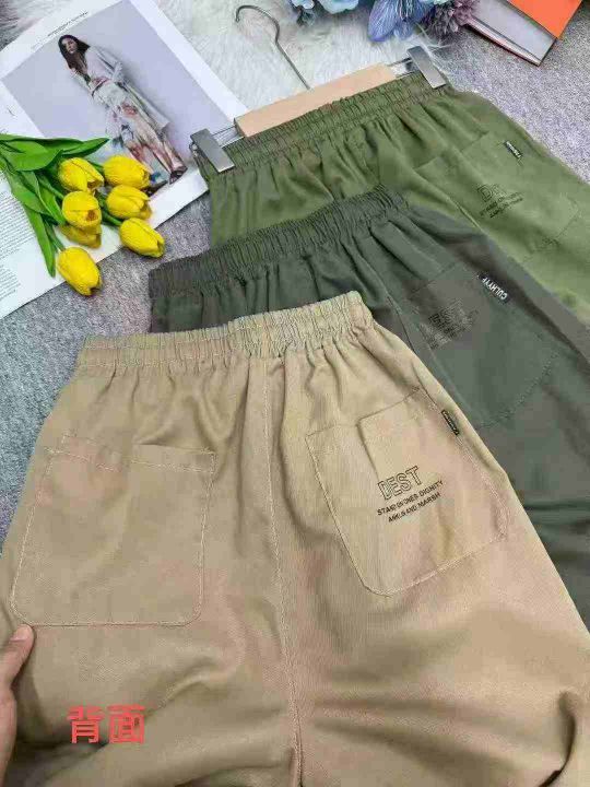 男士宽松休闲工装束脚长裤,前后共4大口袋,独立包装,整款五色,2XL码105厘米,大货暗绿和卡其多,码数M-5XL,数量2846件,分货加0.5,货号111#5