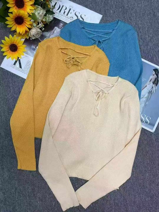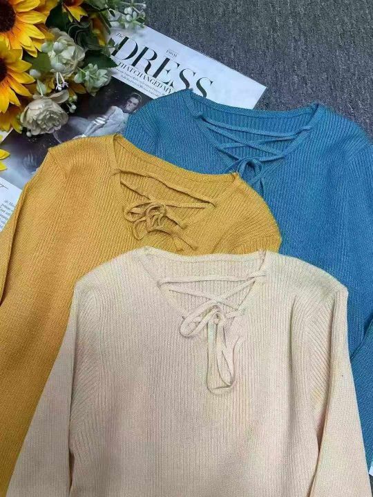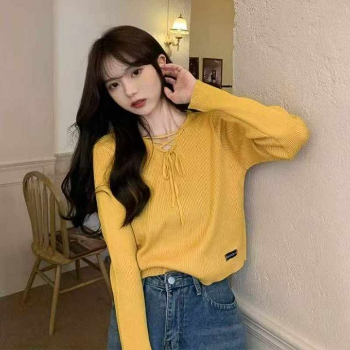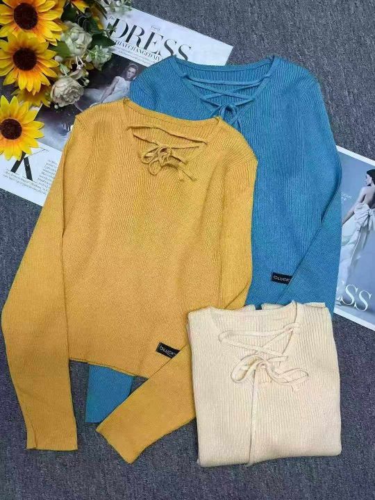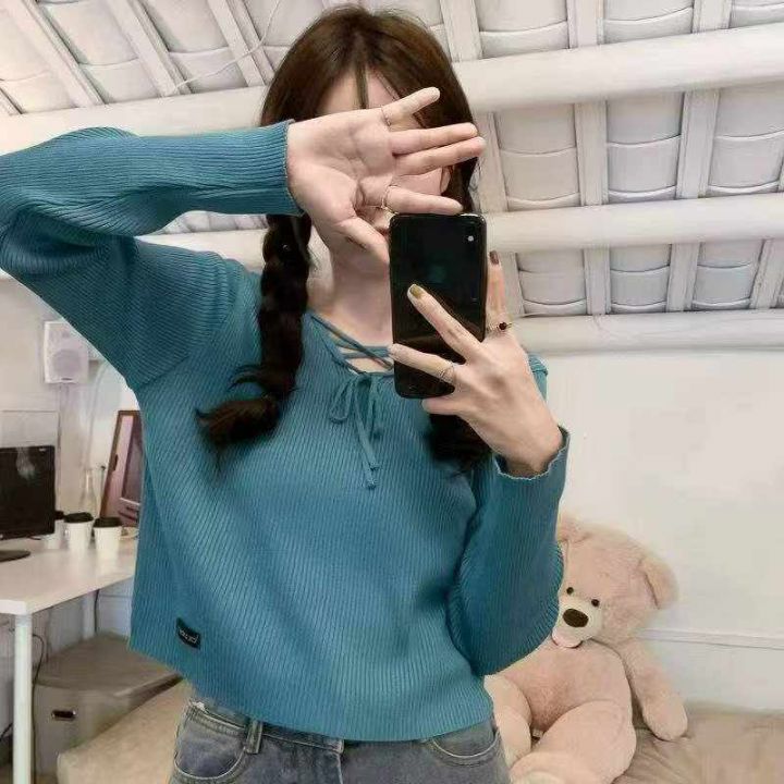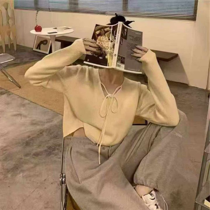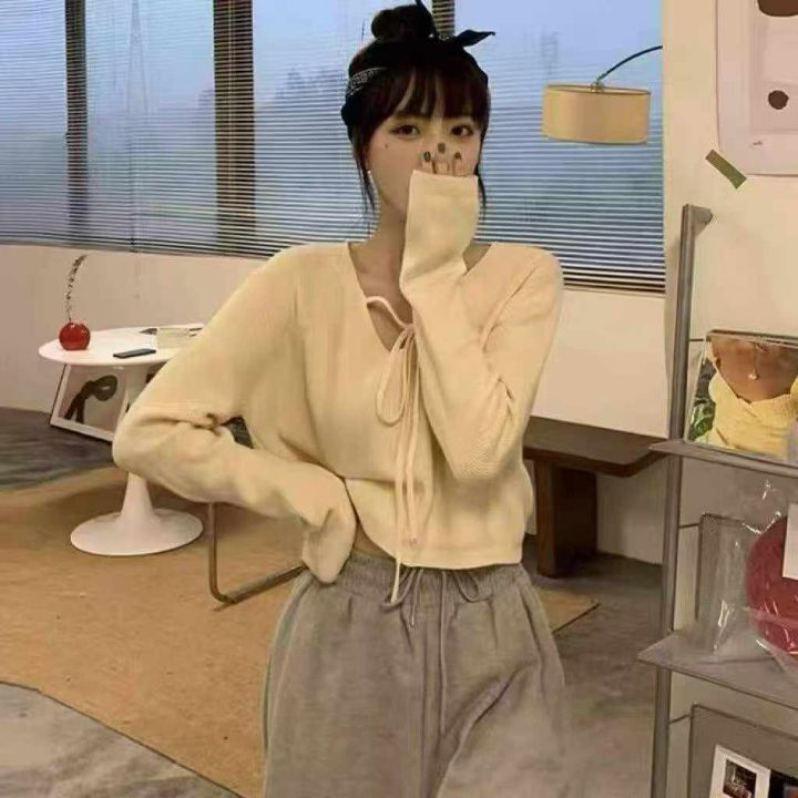 秋季新款韩版宽松设计感小众绑带长袖针织套头毛衣,独立包装,均码面料柔软舒适,100件左右,全清6.9元超低价秒杀!