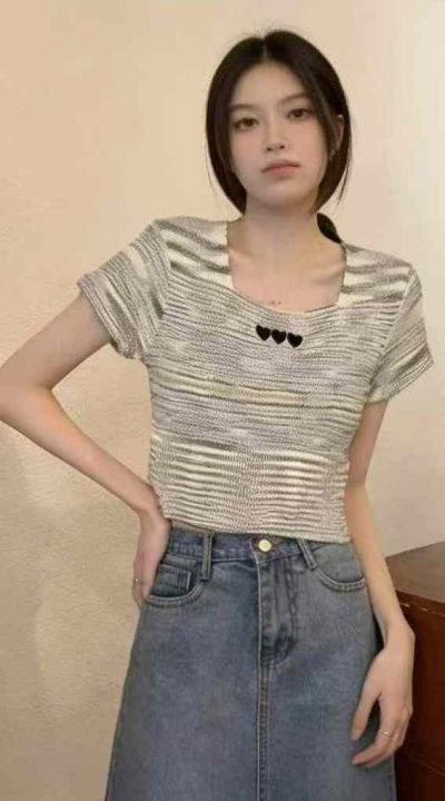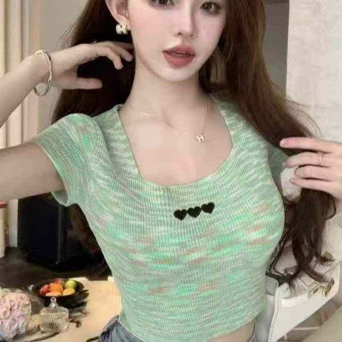 夏季新款撞色彩虹条纹刺绣针织短袖T桖,独立包装,均码面料柔软舒适弹力大,682件,全清5.9元超低价秒杀!分货加一!