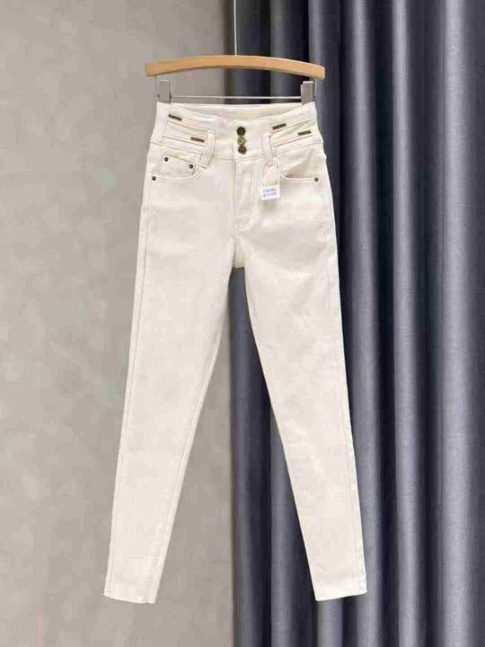 9.9清65件奶白色高腰小脚牛仔裤女秋冬季新款弹力显瘦减龄百搭紧身铅笔裤长裤 内里有加绒 码数25-31 独立包装