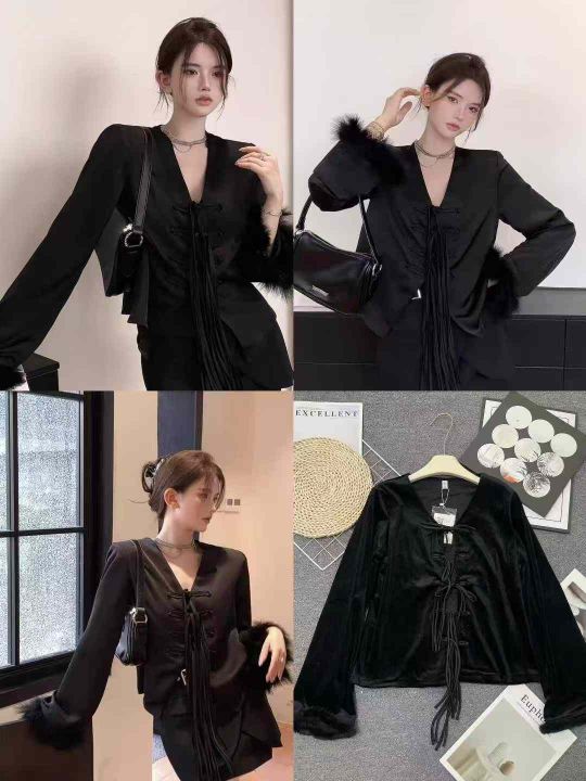 ☕️新中式国风盘扣丝绒上衣连衣裙 ,四个款都是黑色,数量80件左右 ,全清12.8元,高品质不加绒,S到XXL,独立包装[庆祝][庆祝][庆祝]小众设计款长袖上衣