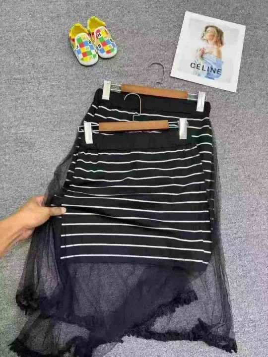 夏季休闲新款高腰松紧半身裙显瘦条纹网纱裙,独立包装,M-2XL,数量50左右...