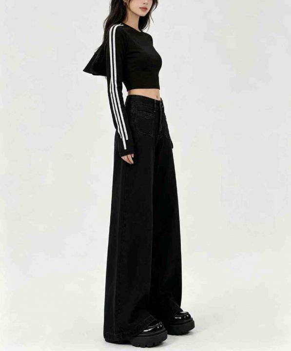 春夏季新款网红爆款洗水棉高腰宽松显瘦直筒大阔腿牛仔长裤,独立包装带吊牌...
