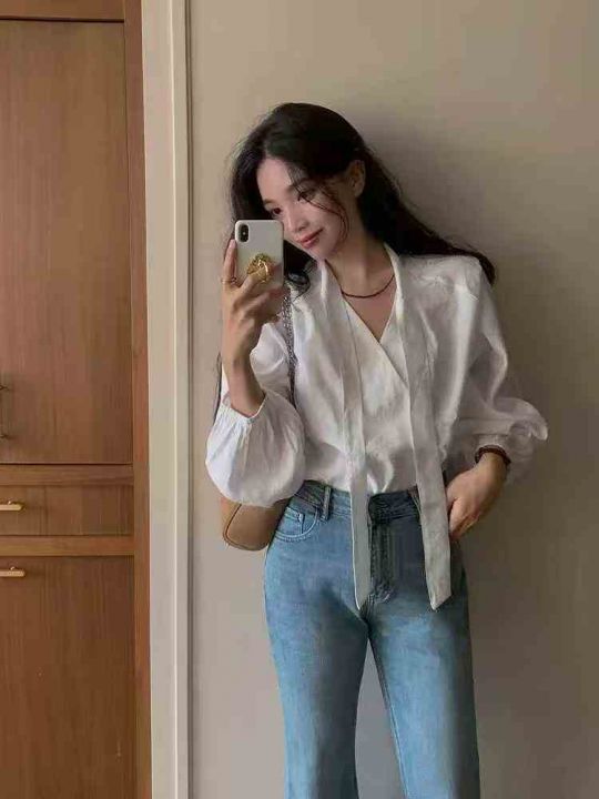 900件左右法式高级感洋气气质百搭长袖V领别致不规则绑带泡泡袖衬衫上衣,做工品质毋庸置疑,尺码S-L,货品干净,独立包装!福利秒杀价6.9