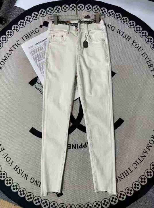 9.9清65件奶白色高腰小脚牛仔裤女秋冬季新款弹力显瘦减龄百搭紧身铅笔裤长裤 内里有加绒 码数25-31 独立包装