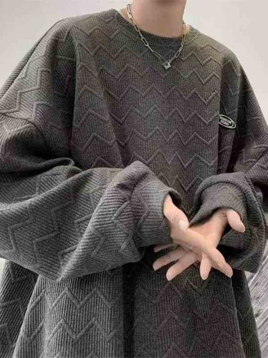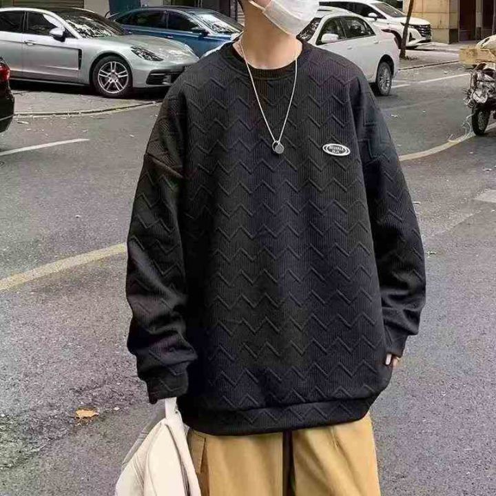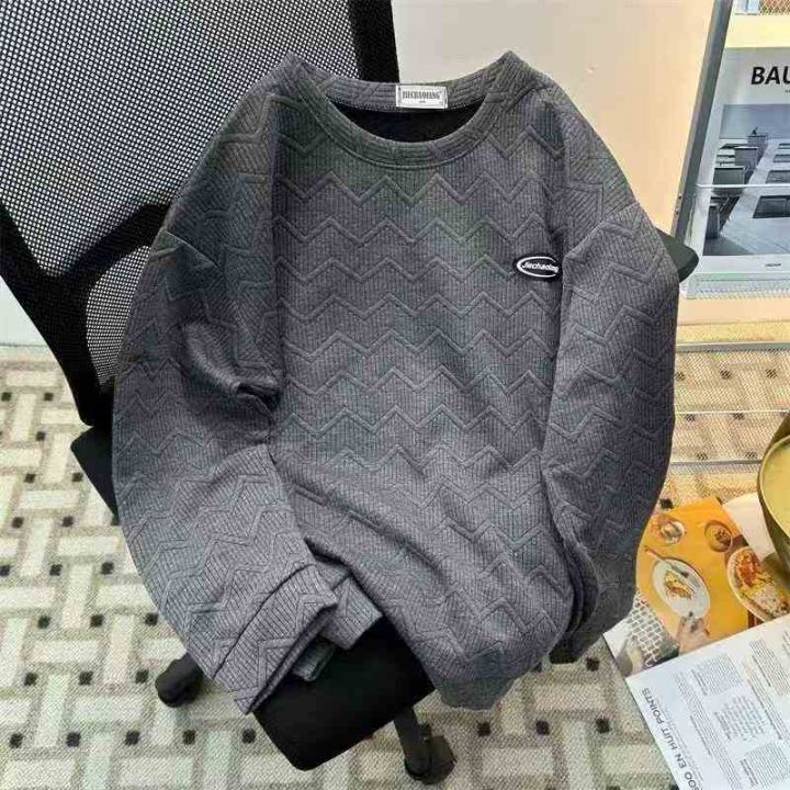 全清9.9,圆领加绒卫衣男设计感小众潮ins立体纹理外套港风情侣无帽炸街上衣服,码数M到3XL,共500件,分货+1