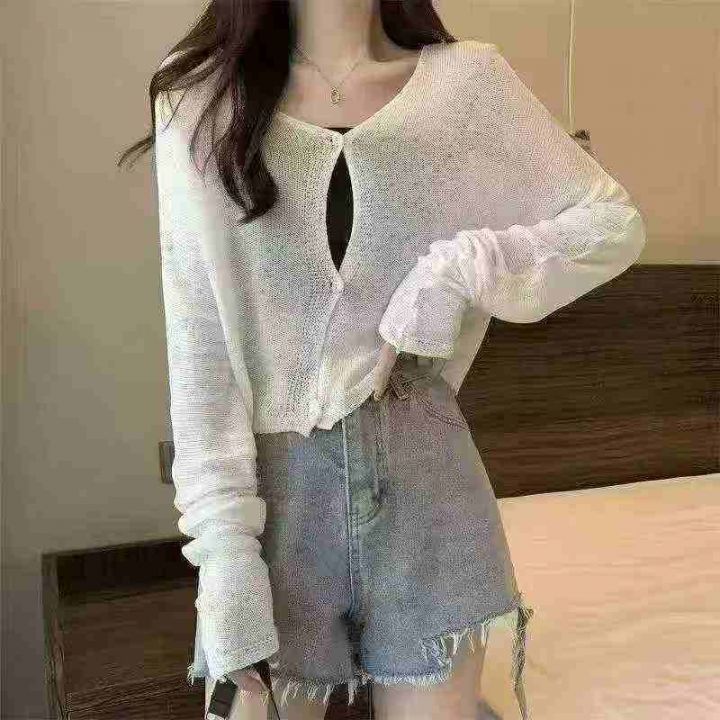 早秋新款冰丝韩系穿搭净版简约宽松纯色针织长袖开衫,...