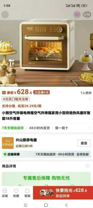 小熊18升空气炸烤箱,