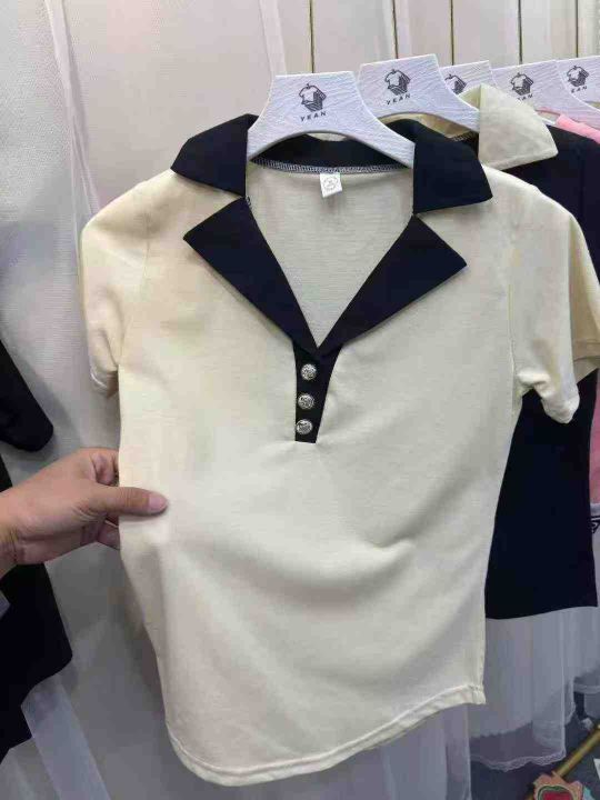 休闲时尚夏季新款洋气质减龄复古短袖t恤女装翻领小香风显瘦上衣,数量700左右,码数S一2XL,独立包装,全清5.5元,分货+0.5元。 货号:24862