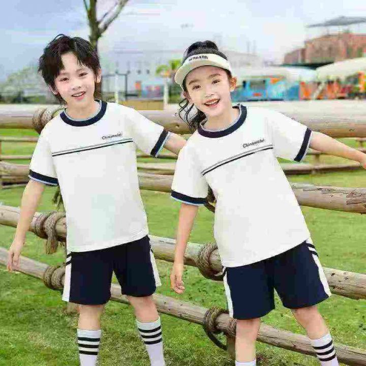 天猫在售款120套左右高品质男女款中大童夏季纯棉运动休闲短裤套装,单款单色,码数120-140,独立包装带吊牌