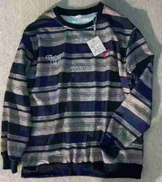 大码潮牌没计感大版型宽松痞帅鱼鳞布印花条纹卫衣,28...