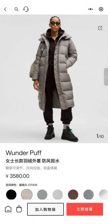 高版本露露家九格羽绒码数46810