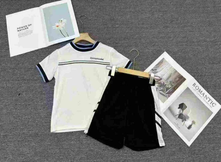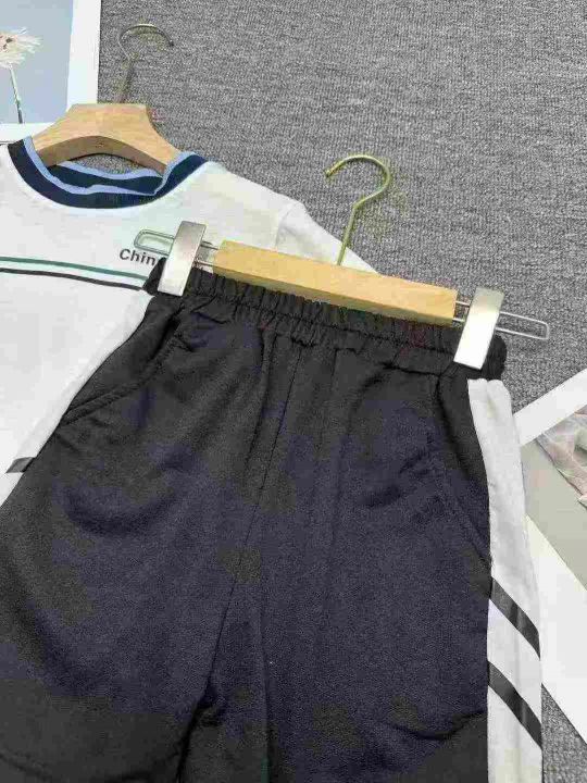 天猫在售款120套左右高品质男女款中大童夏季纯棉运动休闲短裤套装,单款单色,码数120-140,独立包装带吊牌