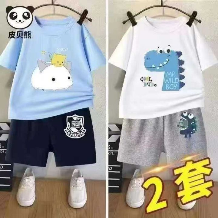 ☕️热销款5000套处理6.8元100件起7.8元童装黑色短裤套装短袖热批中 三个码数2-8岁 独立包装单面棉质量