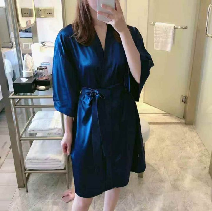 仿真丝夏季女士纯色睡袍性感冰丝浴袍韩版薄款100件,尺码M~3XL独立包装,全清福利价6.8元