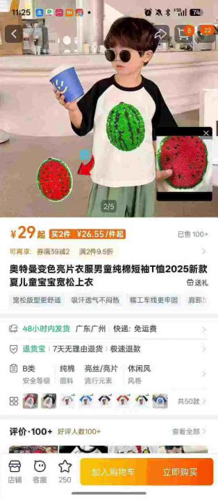 儿童纯棉翻转亮片变色纯棉体恤衫(工艺款)包装高档,全新货
