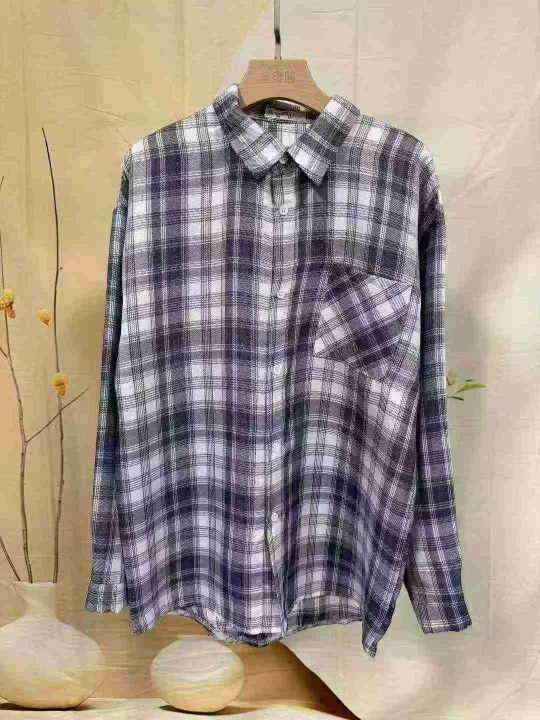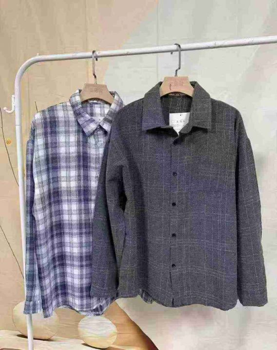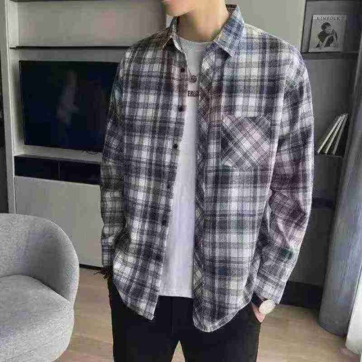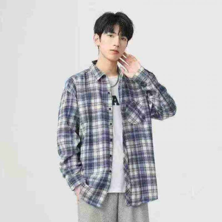 格子长袖衬衫男士春秋季新款潮牌时尚宽松休闲衬衣外套,独立包装, 62件,码数M-2XL