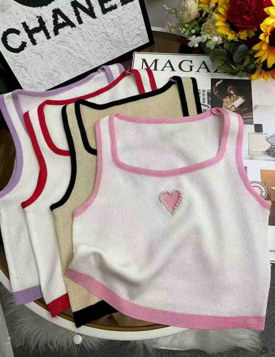 夏季新款纯欲甜辣妹撞色重工订珠刺绣针织背心,独立包...