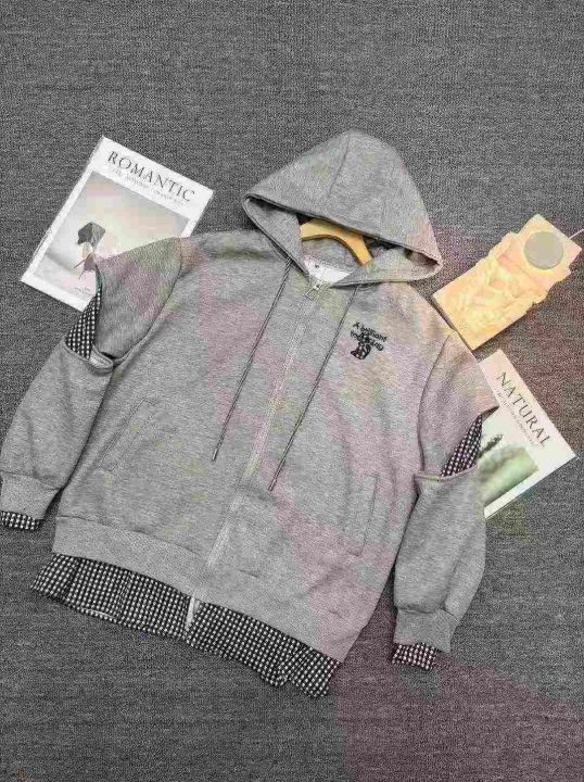 天猫在售款150件左右高品质中大童棉质加绒加厚连帽假两件开衫卫衣外套,AB面刺绣工艺,单款单色,码数130-170,独立包装