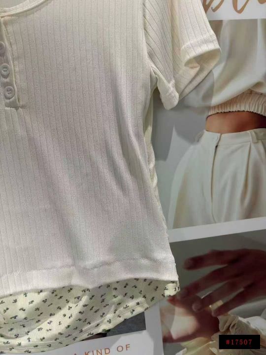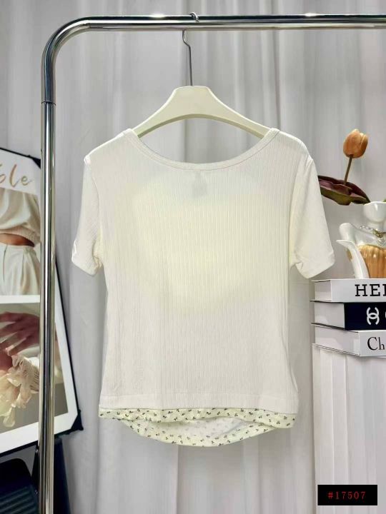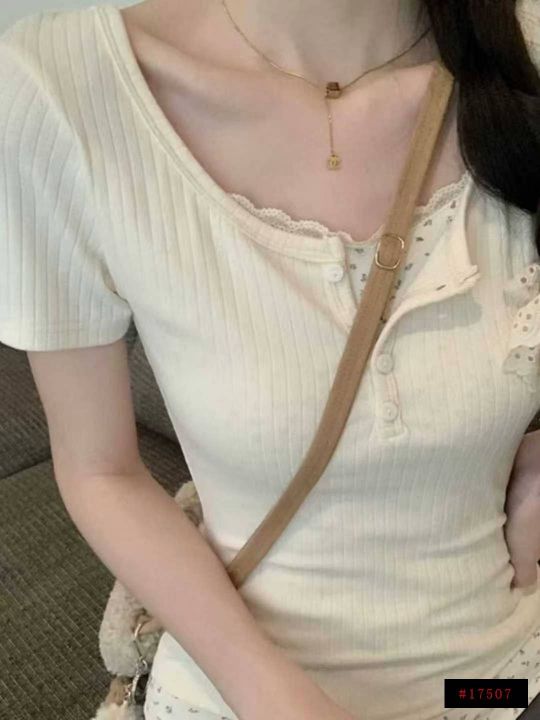 夏季新款蕾丝花边拼接假两件修身显瘦纯欲穿搭短款T恤上衣, 面料亲肤舒适高弹力 独立包装 码数1-4码 数量215件 全清4.5@_@