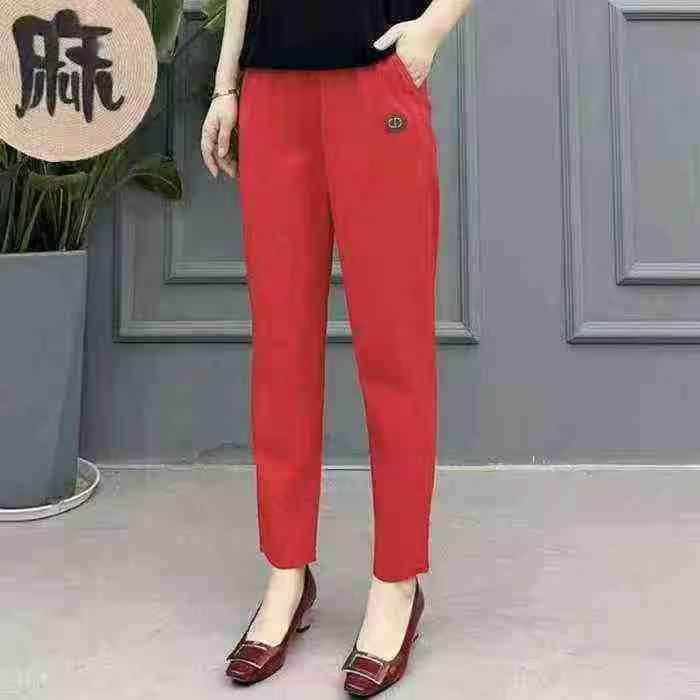 棉麻裤女夏季薄裤子女宽松中年妈妈显瘦女士休闲裤