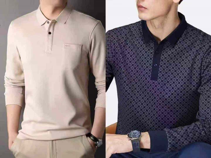 男装春秋高级时尚高品长袖polo衫,品质杠杠滴[强],螺纹领口有弹力,内里领口360度全部包边,两粒扣,专供柜柜货厂家直销!高品质!