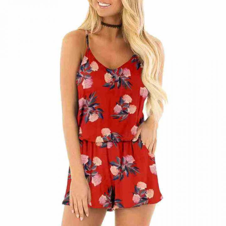 3.8清120件左右跨境亚马逊吊带连体裤春夏玫瑰花印花假两件 单款多色,独立...