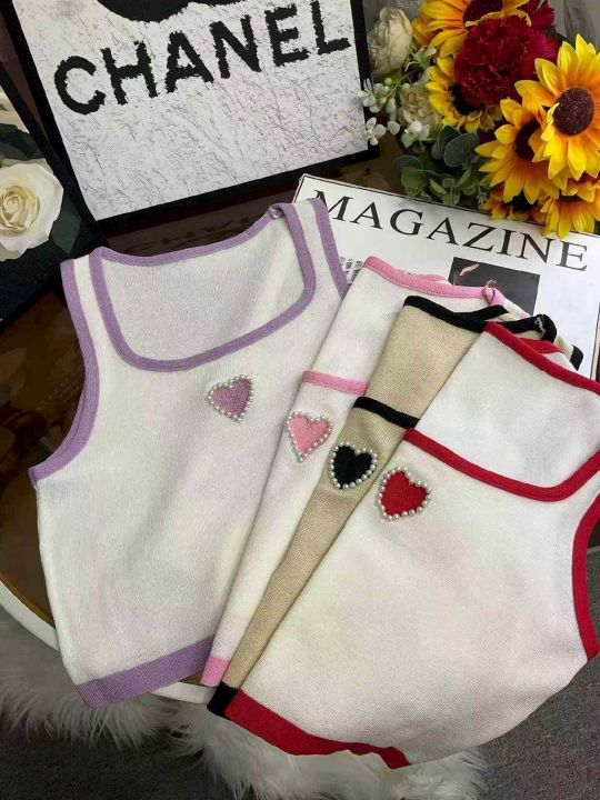 夏季新款纯欲甜辣妹撞色重工订珠刺绣针织背心,独立包...