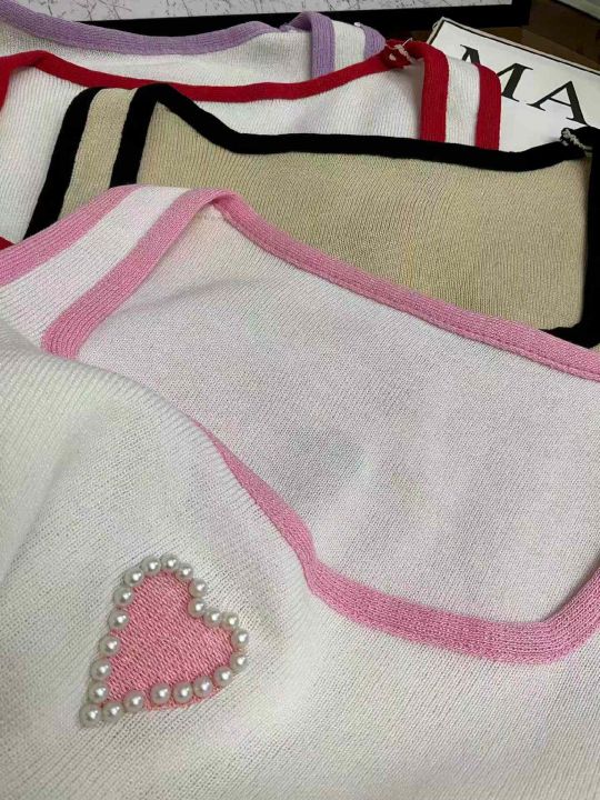 夏季新款纯欲甜辣妹撞色重工订珠刺绣针织背心,独立包装,均码面料柔软舒适弹力大,530件,全清5.9元超低价秒杀!分货加一!