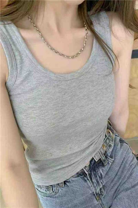 ☕️夏季百搭冰丝螺纹美背背心2600件全清8.8元,200件起9.8元,黑白灰主打...
