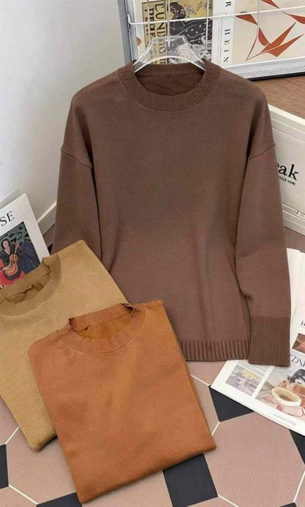 秋冬新款宽松净版百搭简约开叉设计款圆领套头毛衣,独立包装,均码面料柔软...
