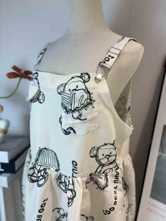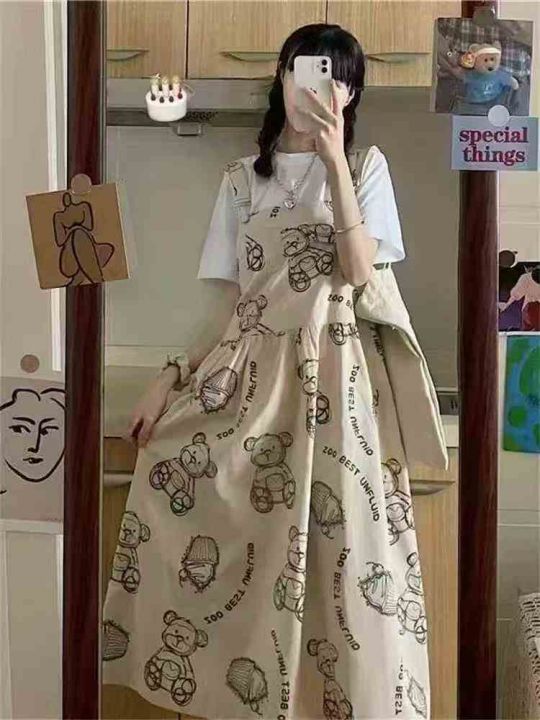 260件左右卡通小熊印花学院风背带连衣裙女中长款宽松...