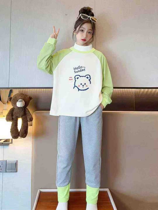 [月亮]:潮童插肩拼色长袖T恤长裤两件套套装