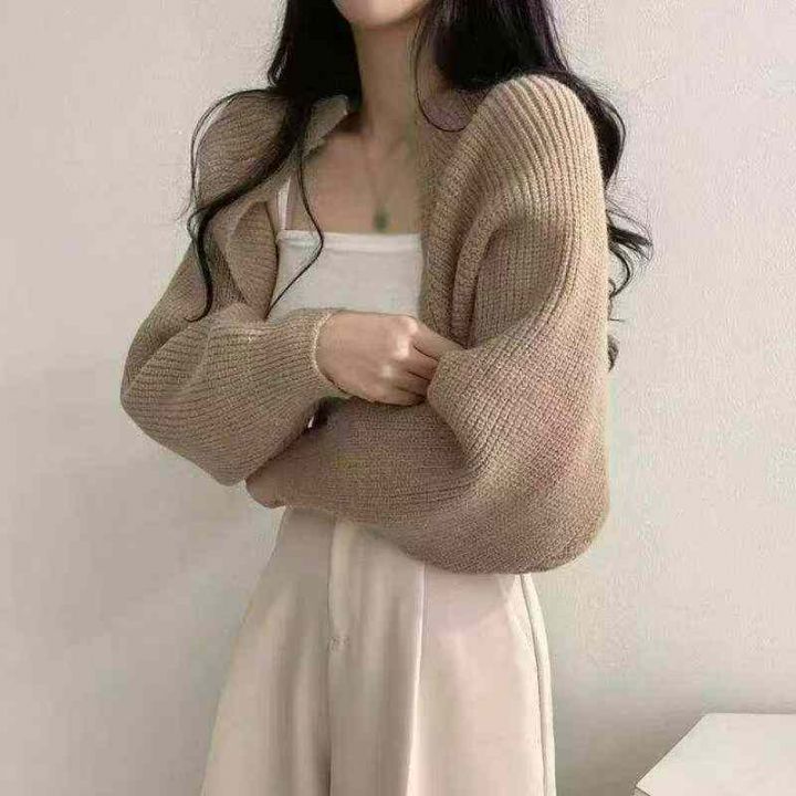 春季新款慵懒chic法式小众气质灯笼袖短款蝙蝠毛衣开衫,独立包装,均码面料...