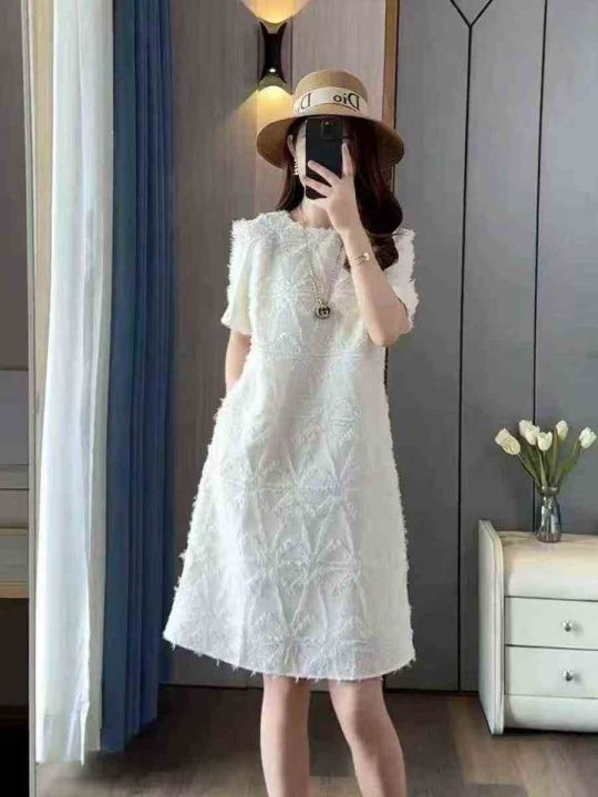 新款2025夏季法式显瘦高贵女装浪漫唯美正肩宽松连衣裙...