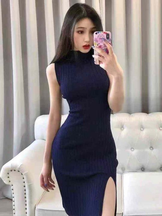 春夏季新款法式复古高弹力修身显瘦半高领坑条开叉设计款针织连衣裙,独立包装,均码面料柔软舒适弹力大,140件,全清6.9元超低价秒杀!。 货号:24862
