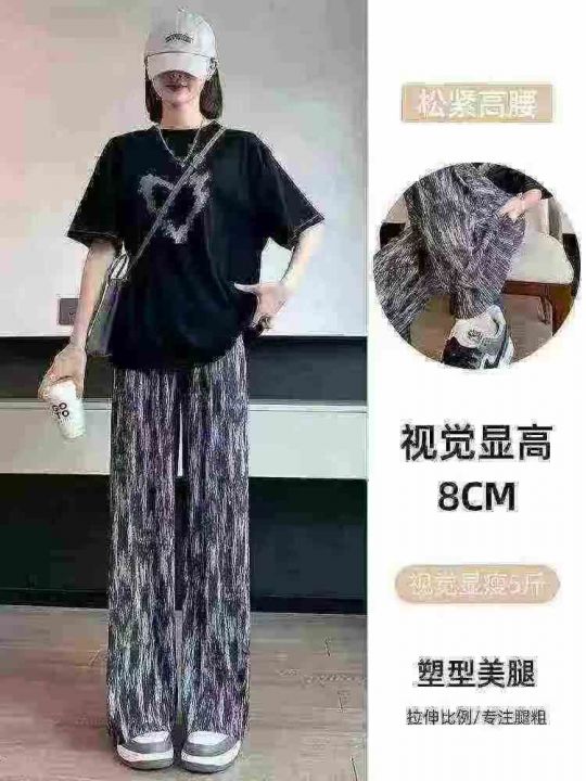 全清价6.9元冰凉感直筒冰丝阔腿裤女夏季薄款休闲防蚊显瘦垂感扎染裤子,独...