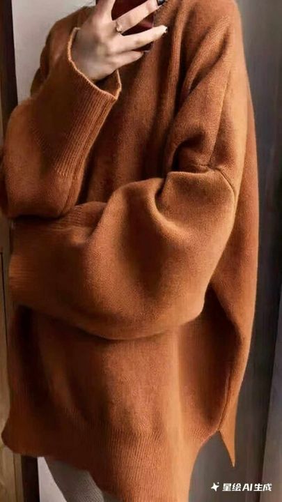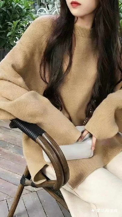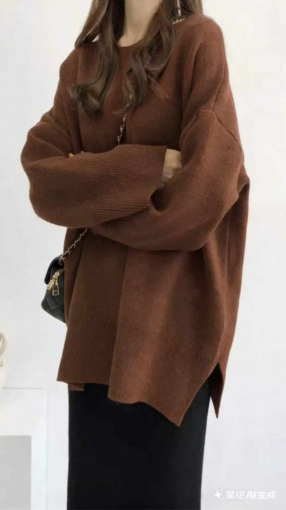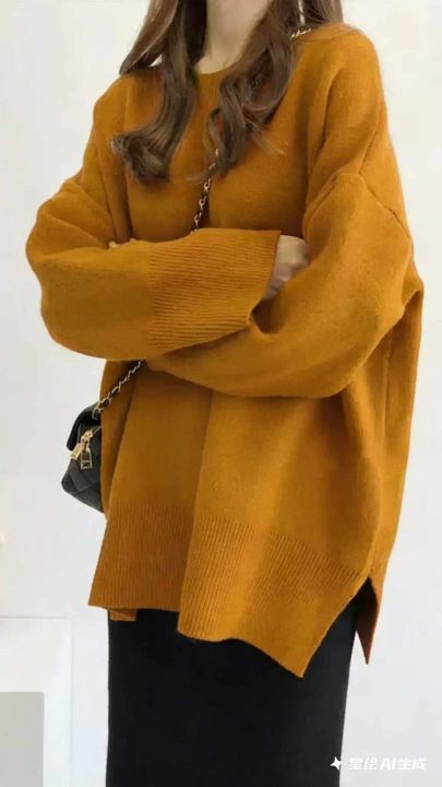 秋冬新款宽松净版百搭简约开叉设计款圆领套头毛衣,独...