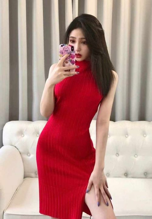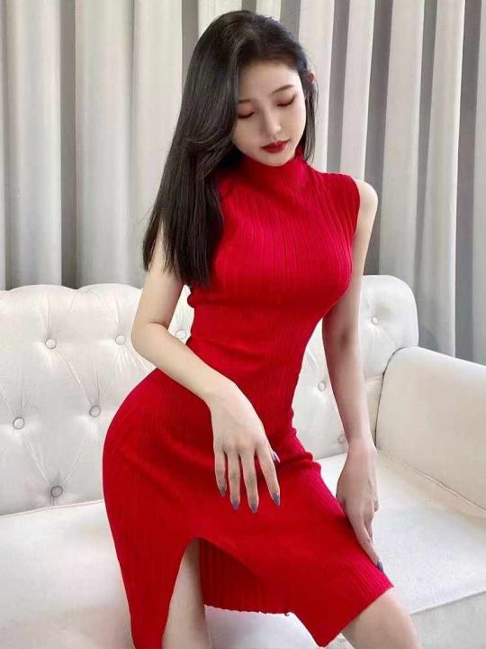春夏季新款法式复古高弹力修身显瘦半高领坑条开叉设计款针织连衣裙,独立包装,均码面料柔软舒适弹力大,140件,全清6.9元超低价秒杀!