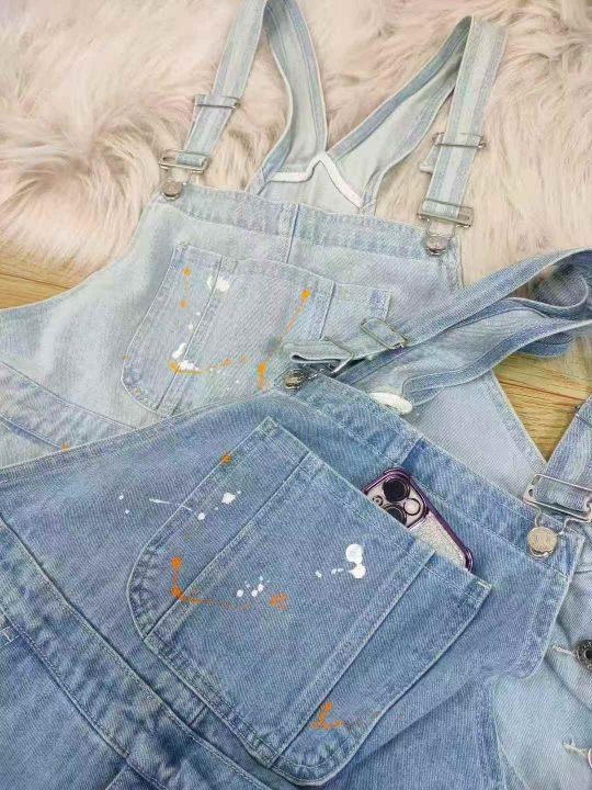 #Jeans wholesale外单女士扎染休闲牛仔背带裤,单款两...