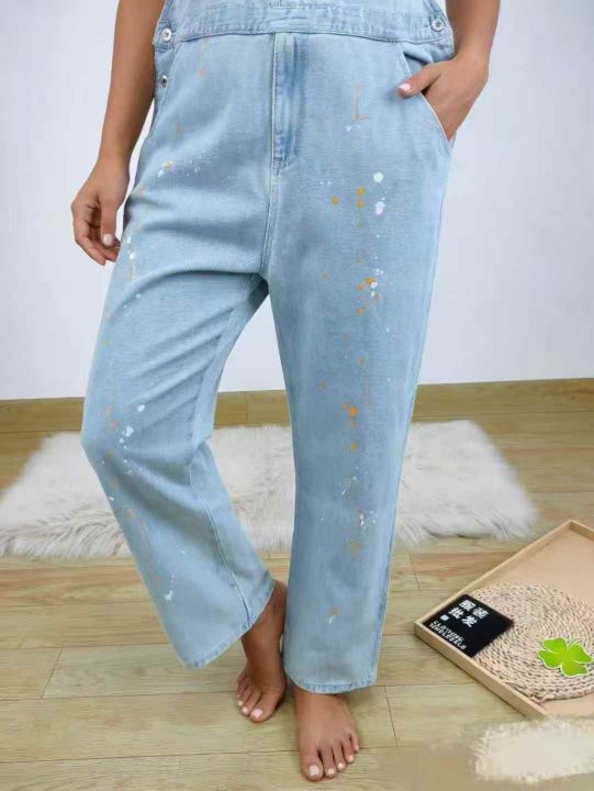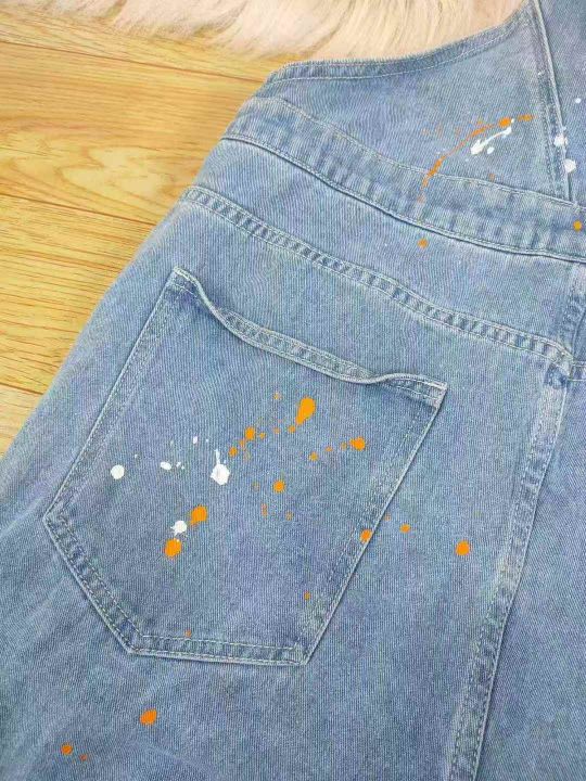 外单女士扎染休闲牛仔背带裤,单款两色,数量90条,尺寸S∽6XL码,批发价14.9秒杀
