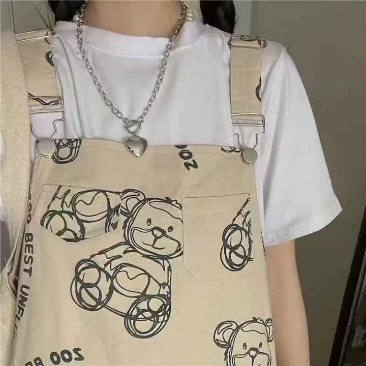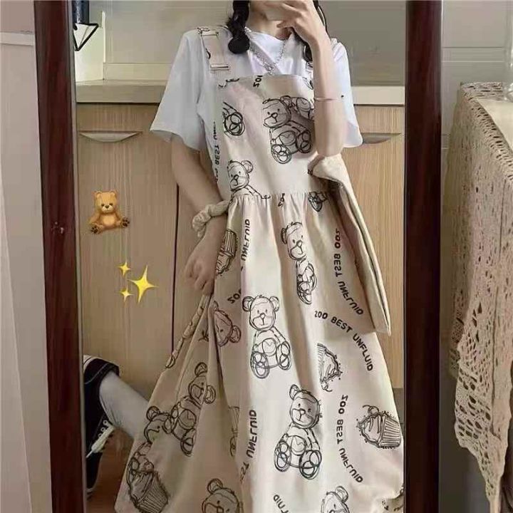 260件左右卡通小熊印花学院风背带连衣裙女中长款宽松...