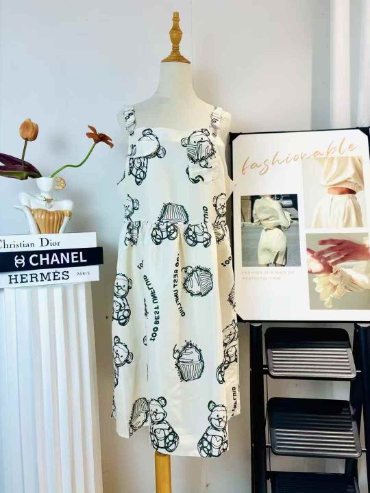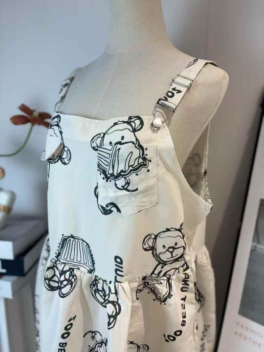 260件左右卡通小熊印花学院风背带连衣裙女中长款宽松吊带裙工装A字裙,品质好!肩带可调节,尺码S-XL,独立包装!福利秒杀价8.8