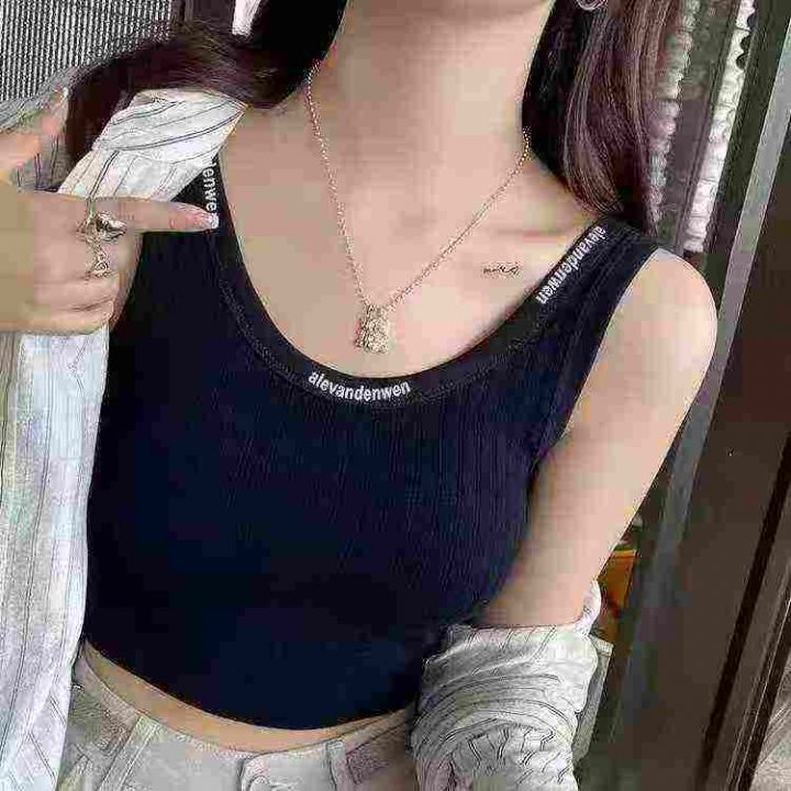 ☕️带胸垫字母设计感美背无钢圈外穿宽肩背心女上衣内...