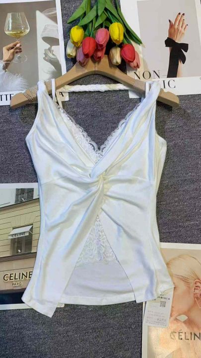上新全清:4.9一件纯欲风挂脖吊带蕾丝拼接辣妹上衣,[...