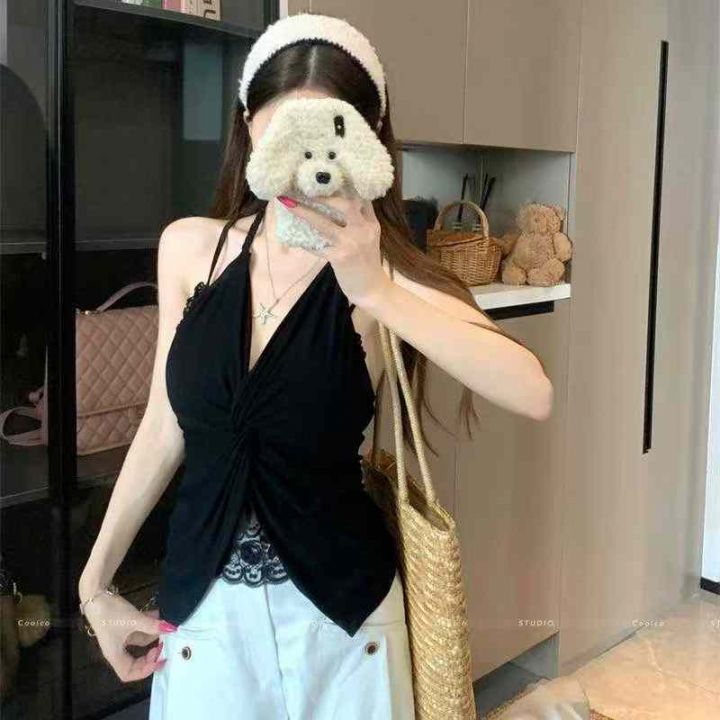 纯欲风挂脖吊带蕾丝拼接辣妹上衣,[爱心]150件左右,黑色为主,码数S-L,穿70-120斤,[666]工厂原包装瑕疵,分货加一