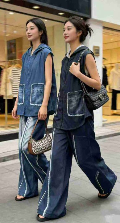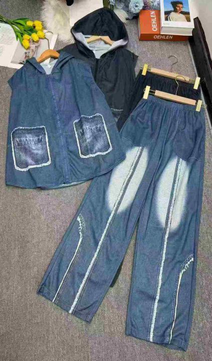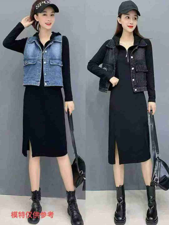 仿牛仔气质马甲套裤时尚马甲套连衣裙,独立包装,码数1-3码,数量147套 ,两整款,大货图四款为主,货号113#12。 货号:24862